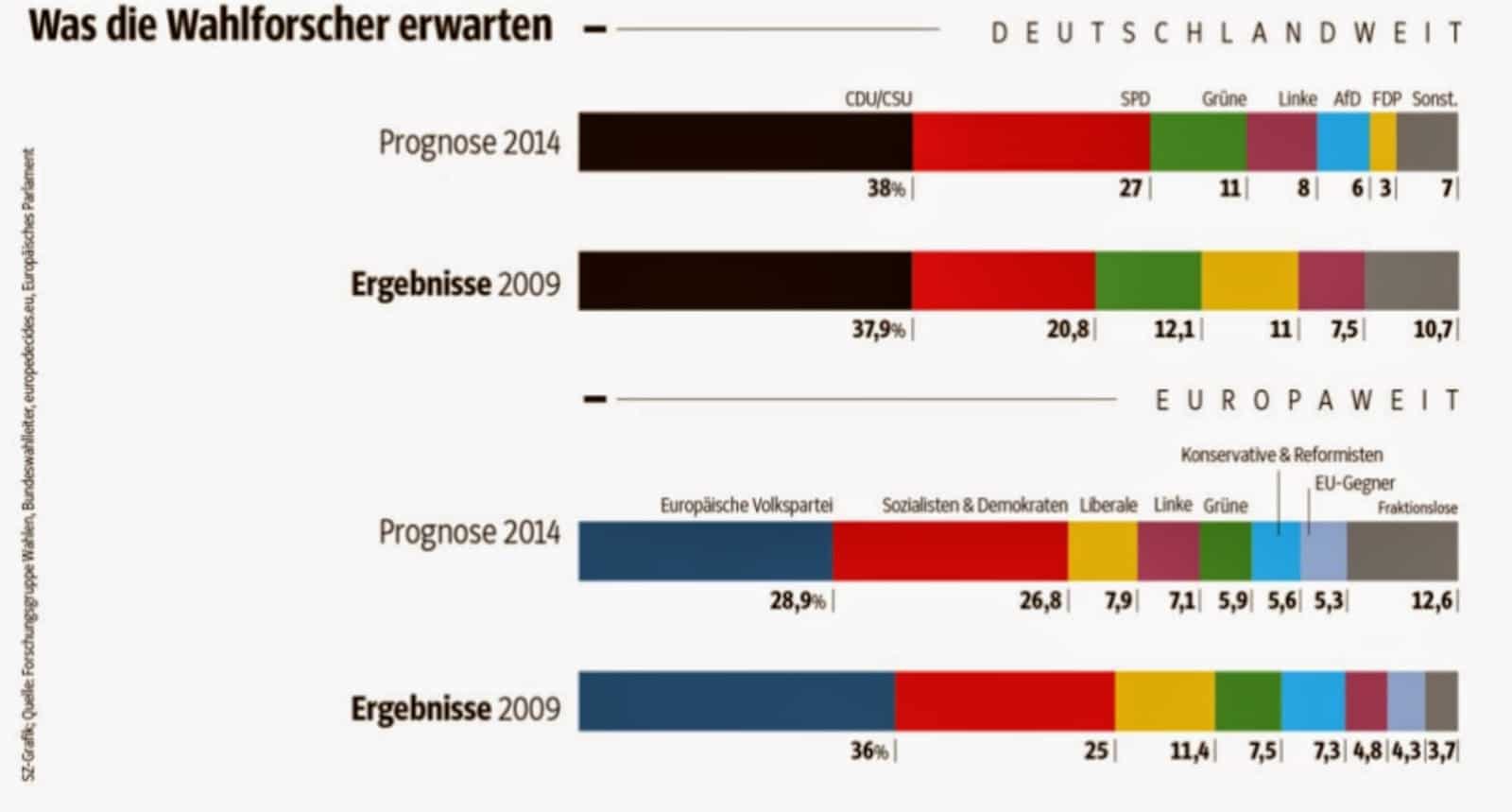 Le previsioni in Germania e in Europa secondo la SZLe ultime due settimane di campagna elettorale delle elezioni europee le ho seguite a Berlino. Qui di seguito sette cose che ho capito: 1) Anche in Germania l’interesse era scarso. Non che i tedeschi dimostrino grande partecipazione per le elezioni in generale, ma rispetto alle politiche del settembre scorso c’era una partecipazione di gran lunga inferiore agli eventi della campagna elettorale. Il disinteresse per le elezioni europee è diffuso (ne ho parlato qui). Tuttavia, anche se ai comizi c’erano poche centinaia di persone, al contempo si avvertiva molta passione per la politica. In ogni manifestazione dei partiti c’erano gruppi di altri movimenti che contestavano e disturbavano, pacificamente. Sul mio canale youtube potete vedere alcuni video molto interessanti e divertenti.2) Se la discussione in Italia è limitata a temi di politica nazionale e alla solita storia se conviene abbandonare la moneta unica o meno, il dibattito politico in Germania si è focalizzato su temi europei. Mentre noi siamo ancora inchiodati alla discussione, da anni Novanta, sui criteri di Maastricht, come se non avessimo deciso volontariamente di aderire all’Euro, a Berlino si cerca di capire vantaggi e svantaggi del Transatlantic Partnership Trade Investment (TTIP), delle conseguenze della crisi in Ucraina, di come contrastare la disoccupazione, l’emergenza sociale e il dramma dei rifugiati che perdono la vita nel mediterraneo. 3) Mai come in questa fase storica i tedeschi stanno bene. Lo si era capito già durante le elezioni politiche dello scorso settembre. Ma questa volta si è percepito ancora di più. Come scrisse mesi fa Bernd Ulrich sulla Zeit (30/2013), i tedeschi per la prima volta nella loro storia hanno la sensazione di vivere in un Paese moralmente integro, economicamente florido, discretamente equo, ammirato a livello internazionale e, infine, anche cool. Friederike Haupt, sulla Frankfurter Allgemeine Sonntagszeitung di oggi, scrive che “la Germania sta particolarmente bene. È uno dei Paesi più ricchi del pianeta e gli stranieri guardano con invidia alla bassa quota di disoccupati.” La classe politica e dirigente tedesca ritiene, inoltre, di essere un pilastro dell’Unione Europea. Con un atteggiamento meno fermo, più flessibile e più accondiscendente nel momento peggiore della crisi probabilmente sarebbe crollato tutto. La Germania è stato un punto fermo per forza economica, stabilità politica, autorevolezza internazionale dei suoi leader e anche per la posizione geografica. Non fraintendete però. Non c’è alcuna volontà di potenza. I tedeschi sono ripiegati su stessi convinti dell’affidabilità e solidità del proprio modello economico in una fase storica di grandi cambiamenti sociali e geopolitici che procurano forti sentimenti di incertezza e paura nei confronti del futuro.4) L’Euro non è un problema. Se ne discute poco: qualche articolo, alcuni buoni servizi della ZDF (seconda rete tedesca), ma non è mai stato un vero tema di discussione pubblica. C’è solo un partito che parla quasi esclusivamente di euro e di debiti eccessivi dei Paesi del Sud Europa: Alternative für Deutschland. Gli euroscettici tedeschi vorrebbero non tanto tornare al Marco tedesco, ma abbandonare al proprio destino Portogallo, Grecia, Italia e Spagna. Insomma, teniamoci stretta Angela Merkel perché l’alternativa potrebbe essere peggiore. 5) Per i tedeschi resta importante il richiamo alla Germania. Lo ha dimostrato la campagna elettorale di un autentico europeista come Martin Schulz. In Germania i suoi slogan erano: “Dalla Germania. Per l’Europa“, “Solo votando Martin Schulz e la SPD, un tedesco può diventare Presidente della Commissione europea“. Alcuni slogan della CDU di Merkel non erano di tono molto diverso: “Per una forte Germania in una forte Europa“.6) Alla fine dei comizi di Alternative für Deutschland c’era l’inno europeo (la nona sinfonia di Beethoven) ma tante bandiere tedesche e richiami continui alla tradizione nazionale. Ai comizi della CDU c’erano solo bandiere dell’Europa, i messaggi di Merkel e dei suoi candidati erano da europeisti convinti, ma alla fine c’era l’inno tedesco. 7) In Germania è diffusissimo il voto per posta. Non ho capito perché ancora noi in Italia non l’abbiamo introdotto.twitter@uvillanilubelli
